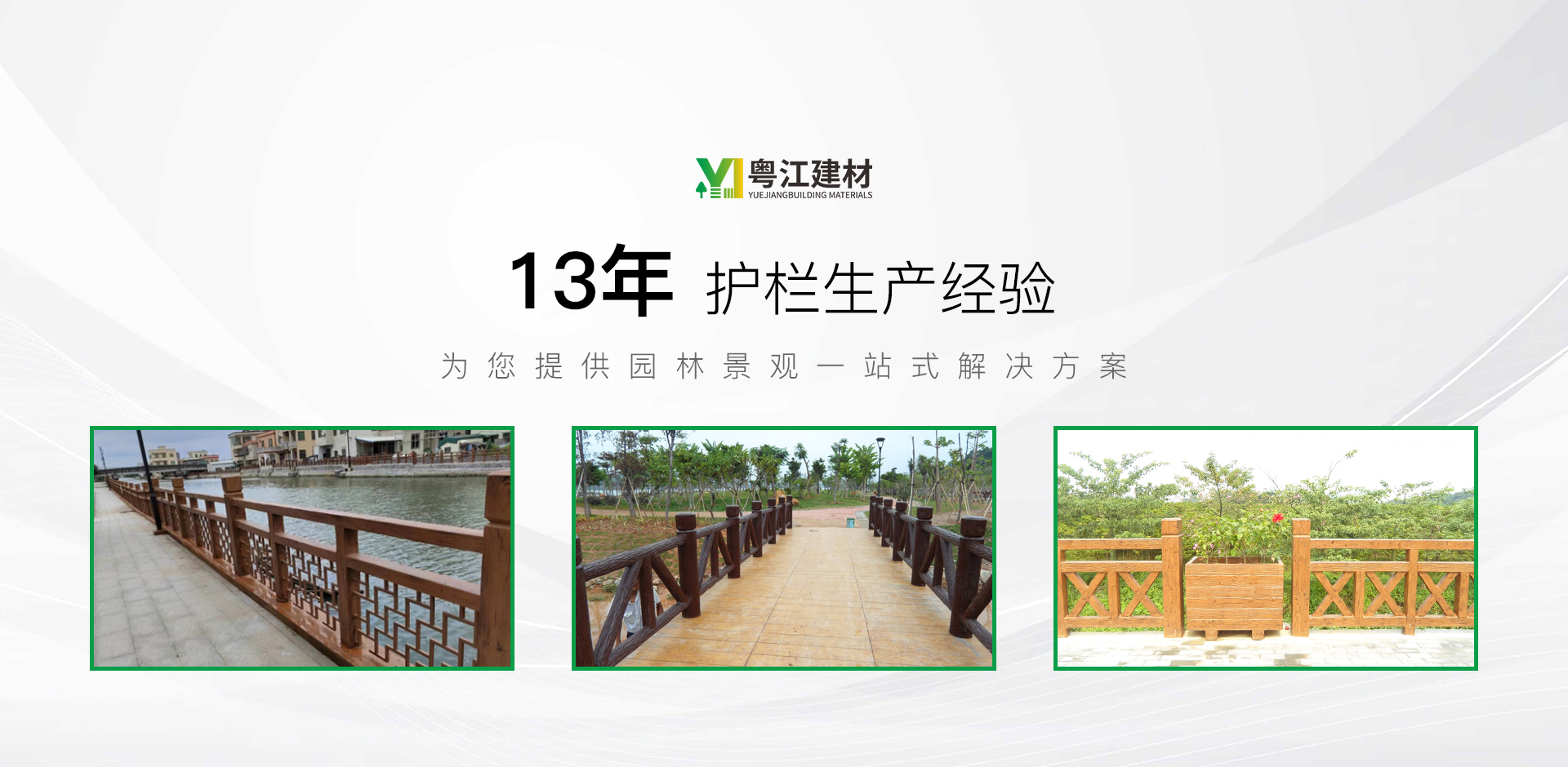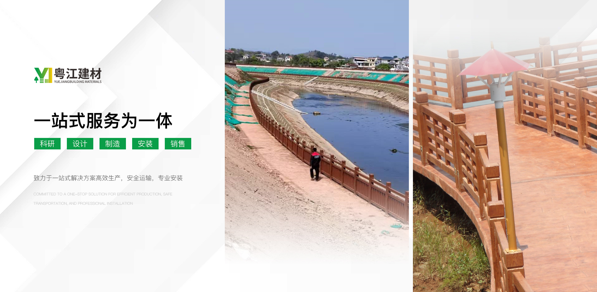 江門(mén)市粵江建材有限公司隸屬于中山市鴻文園林景觀工程有限公司(前身為成立于2010年——中山市三圣園林景觀工程有限公司,2021年更名為中山市鴻文園林景觀工程有限公司)旗下子公司,成立于2022年,公司坐落于粵港澳大灣區(qū)重要節(jié)點(diǎn)城市—鶴山市,占地10余畝,現(xiàn)有員工50余人。是一家專(zhuān)業(yè)從事園林護(hù)欄設(shè)計(jì)及施工一體化的園林景觀工程公司,公司擁有仿木、仿石、仿竹、鑄造石四大系列產(chǎn)品,主營(yíng)產(chǎn)品有:河道護(hù)欄、橋梁護(hù)欄、仿木護(hù)欄、仿漢白玉護(hù)欄、仿石護(hù)欄、鑄造石護(hù)欄、仿竹護(hù)欄、仿木護(hù)岸樁、仿木花架、仿木花箱、仿木地板、組合護(hù)欄、棧橋等景觀產(chǎn)品。產(chǎn)品涉及水利建設(shè)、景區(qū)建設(shè)、城鎮(zhèn)園林建設(shè)、小區(qū)美化建設(shè)、新農(nóng)村改造等景觀裝飾。